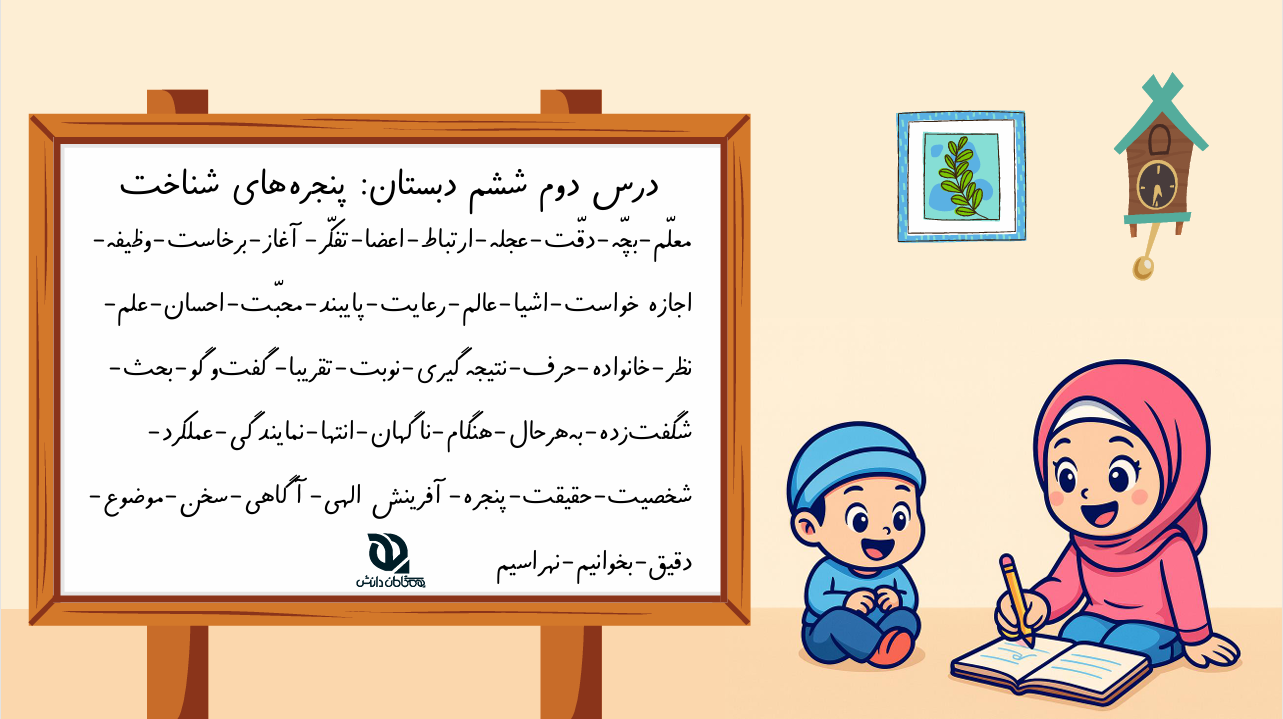 آموزش درس دوم فارسی ششم دبستان، پنجرههای شناخت؛ همراه با توضیح نکات مهم، تمرین کلمات و تقویت املا در فضایی شاد و آموزشی